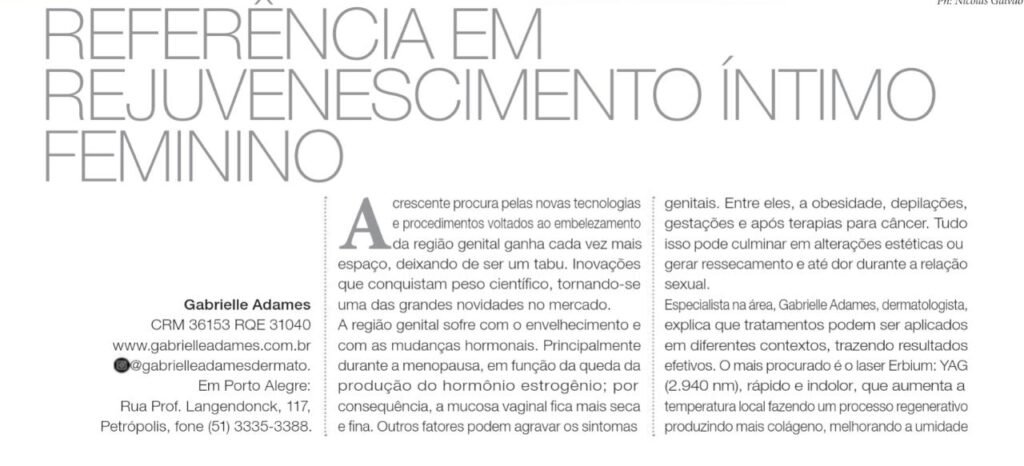 A Dra. Gabrielle falou sobre rejuvenescimento íntimo feminino em matéria na Revista Caras desta semana. A matéria foi uma reportagem especial do Caras Mais, caderno de saúde da revista. Confira a matéria completa aqui.